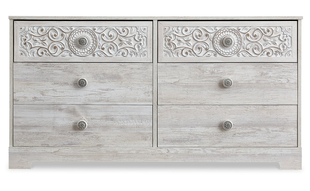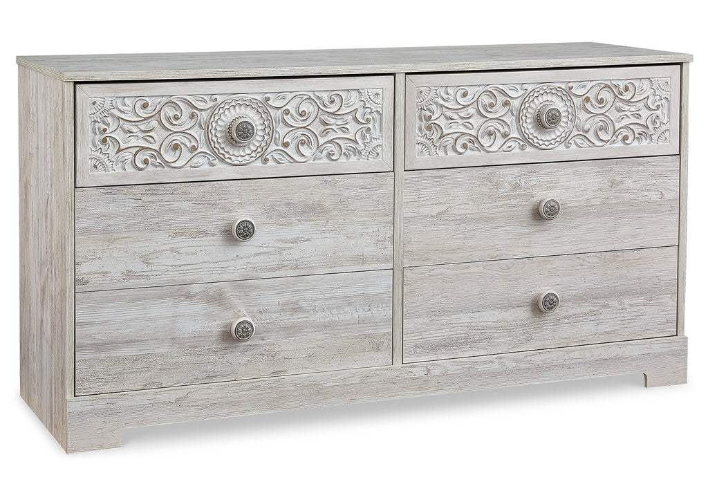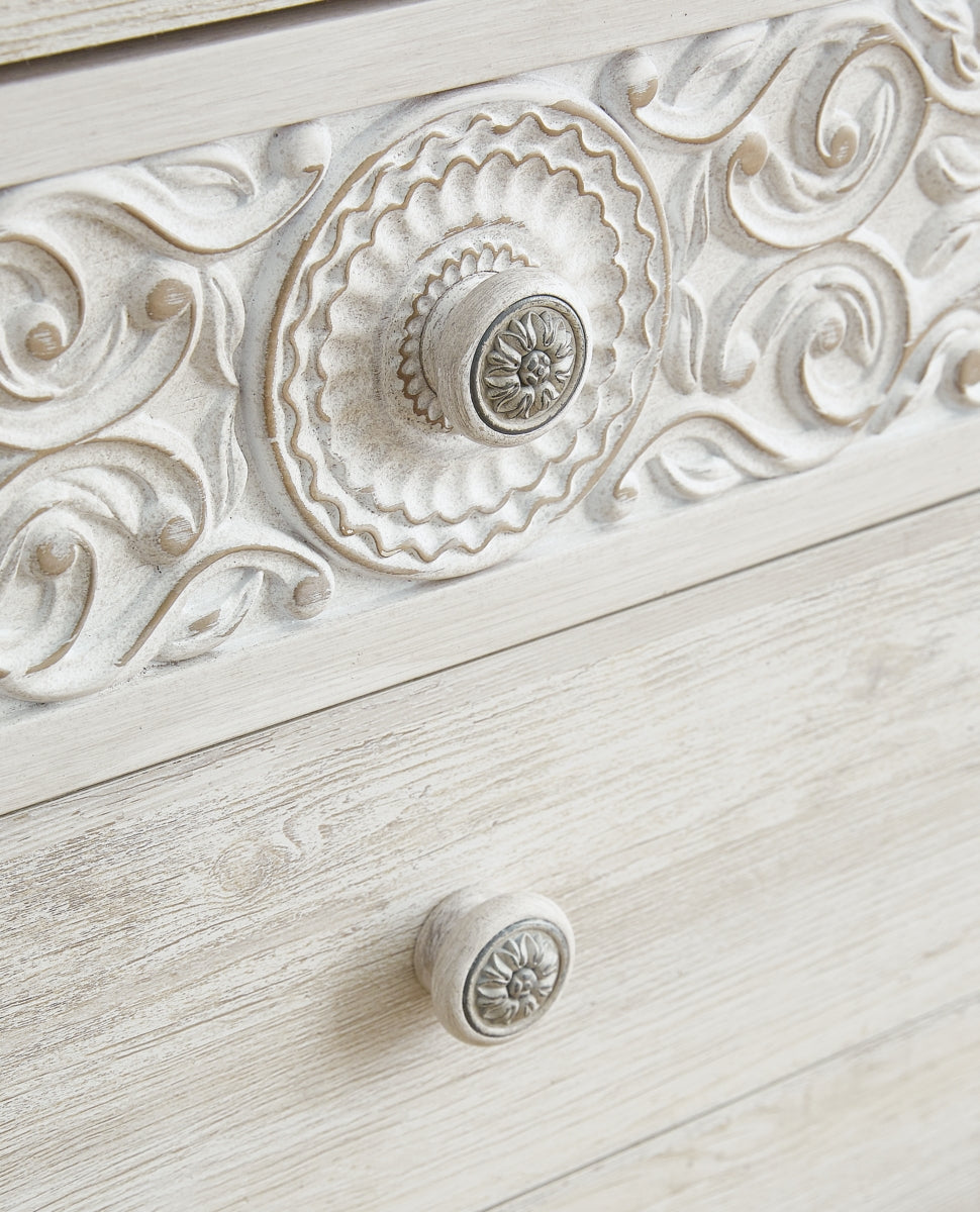 If it’s coastal chic or cottage quaint style you long for, this whitewashed dresser invites you to go to town. Its distinctive weatherworn finish conveys an easy-breezy sensibility, perfect for a restful bedroom retreat. Tastefully edited lines and medallion drawer pulls give this attractively priced dresser a high-end aesthetic.