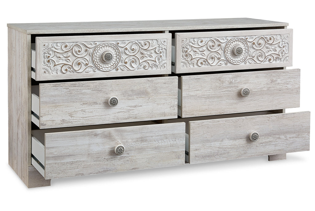 • 6 spacious smooth-gliding drawers; vinyl-wrapped sides and back for extra durability