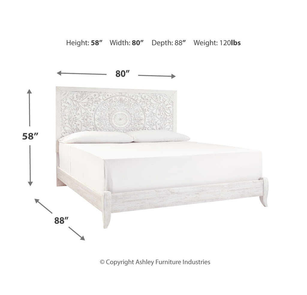 Paxberry King Panel Bed with Mirrored Dresser and Chest