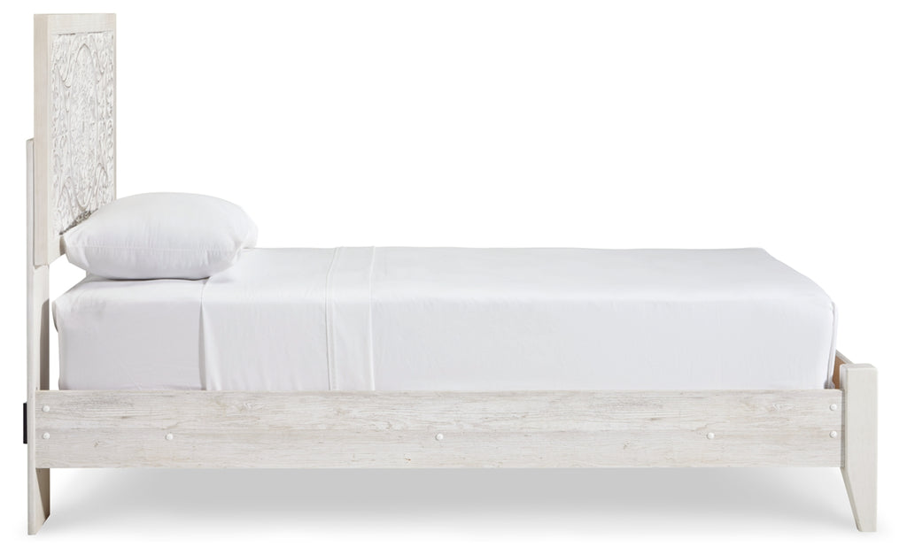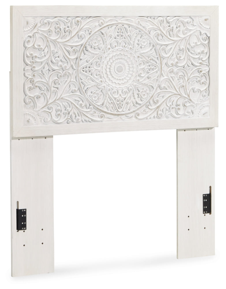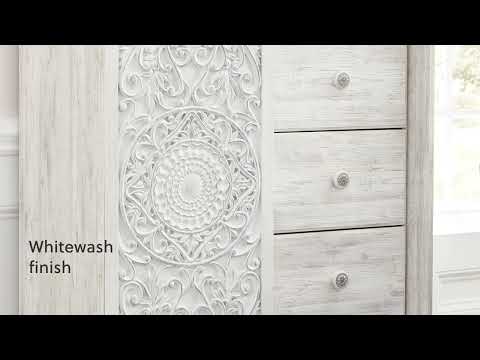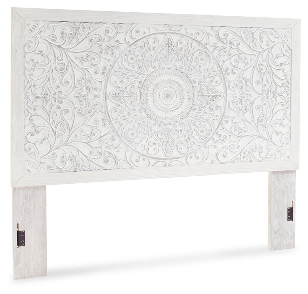 Your young trendsetter can live out her free spirit with this uniquely chic queen bed. Exquisite carved medallion pattern is a testament to true style. Charming whitewashed finish sets a foundation for a room bursting with personality. Headboard legs have four height options to grow with your child.