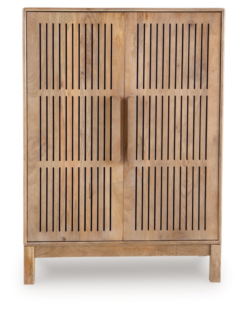 Host in casually chic fashion with this bar cabinet. Outfitted with a natural brown finish, it’s stunningly crafted with mango wood. Bottle and wine glass holders keep your entertaining and nightcap essentials neatly organized. And with a mix of fixed and removable shelves, you can adjust the cabinet space to suit your storage needs. Cutout door fronts grace the piece with an air of carefree charm.