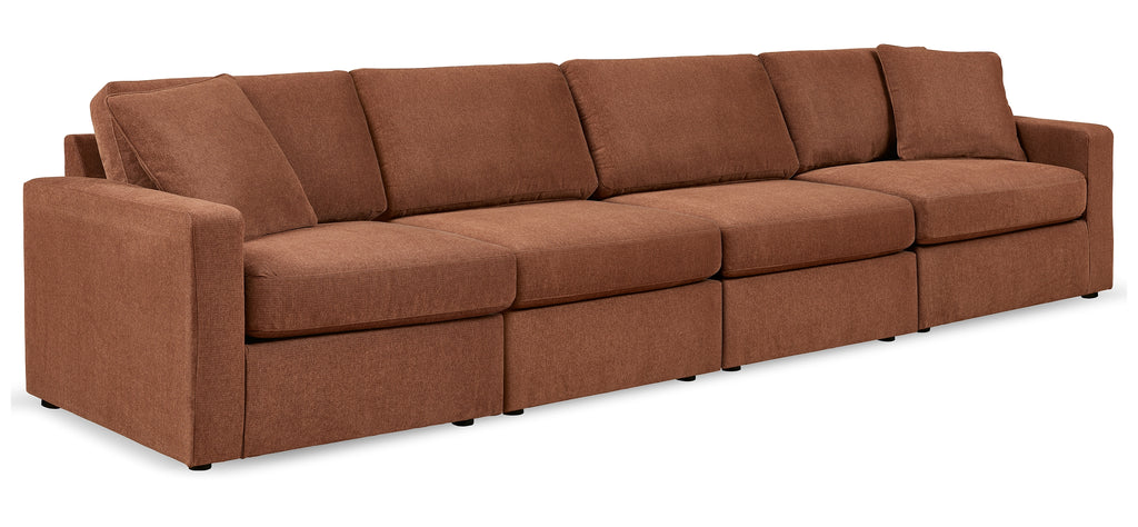 • Includes 4 modular pieces: left-arm facing corner chair, 2 armless chairs and right-arm facing corner chair