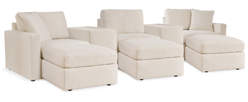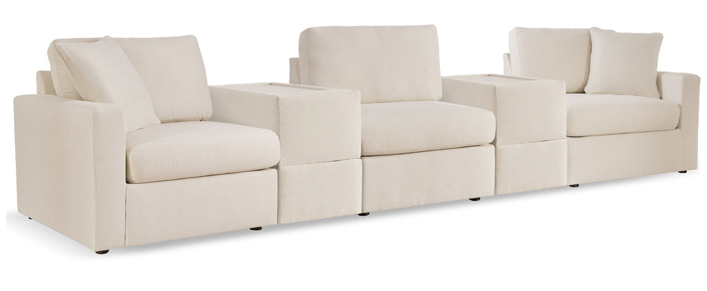 • Includes 5 modular pieces: left-arm facing corner chair, armless chair, 2 consoles with storage and right-arm facing corner chair