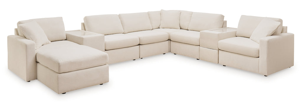 • Includes 8 modular pieces: left-arm facing corner chair, 3 armless chairs, 2 consoles with storage, wedge and right-arm facing corner chair