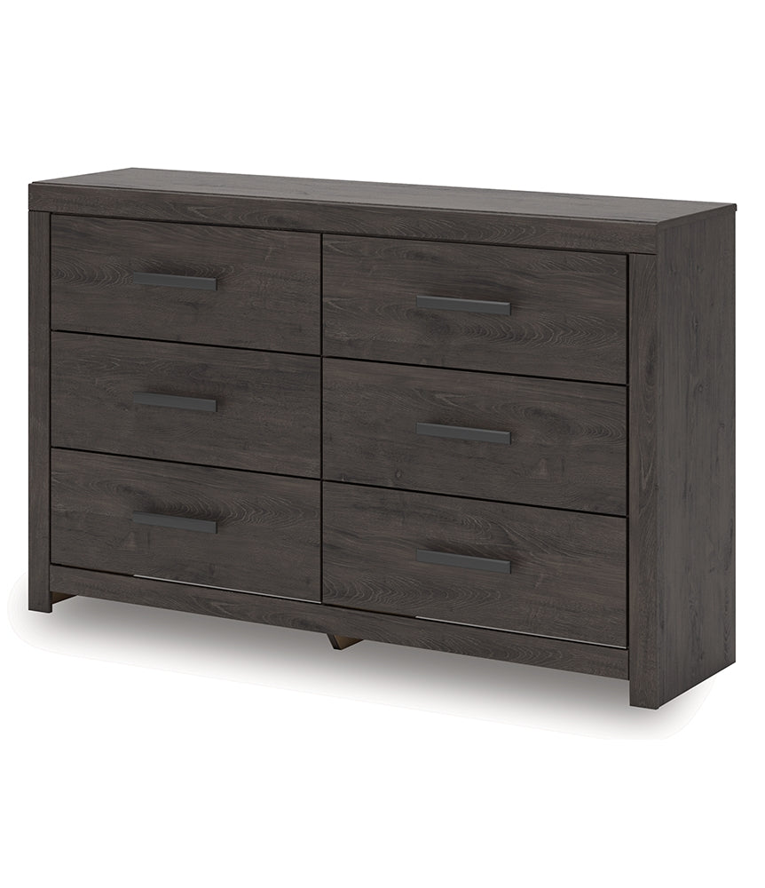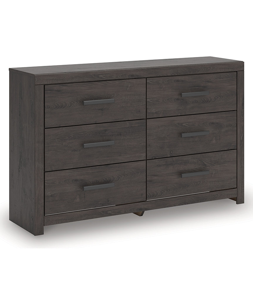 Designed with everyday style in mind, this dresser is a simply chic approach to modern living. A dark charcoal finish blends black and brown undertones, creating a versatile look that effortlessly pairs with your existing pieces. And for must-have function, six smooth-gliding drawers store clothes and linens in charming fashion.