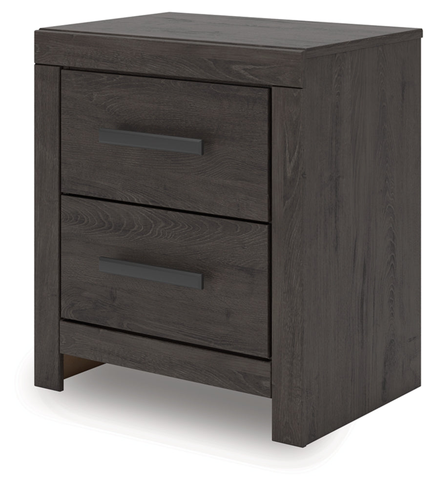 Designed with everyday style in mind, this nightstand is a simply chic approach to modern living. A dark charcoal finish blends black and brown undertones, creating a versatile look that effortlessly pairs with your existing pieces. And for must-have function, two smooth-gliding drawers store bedside essentials in charming fashion.