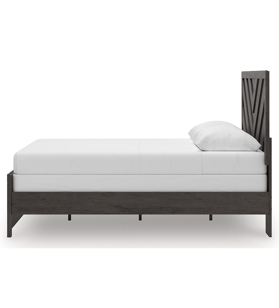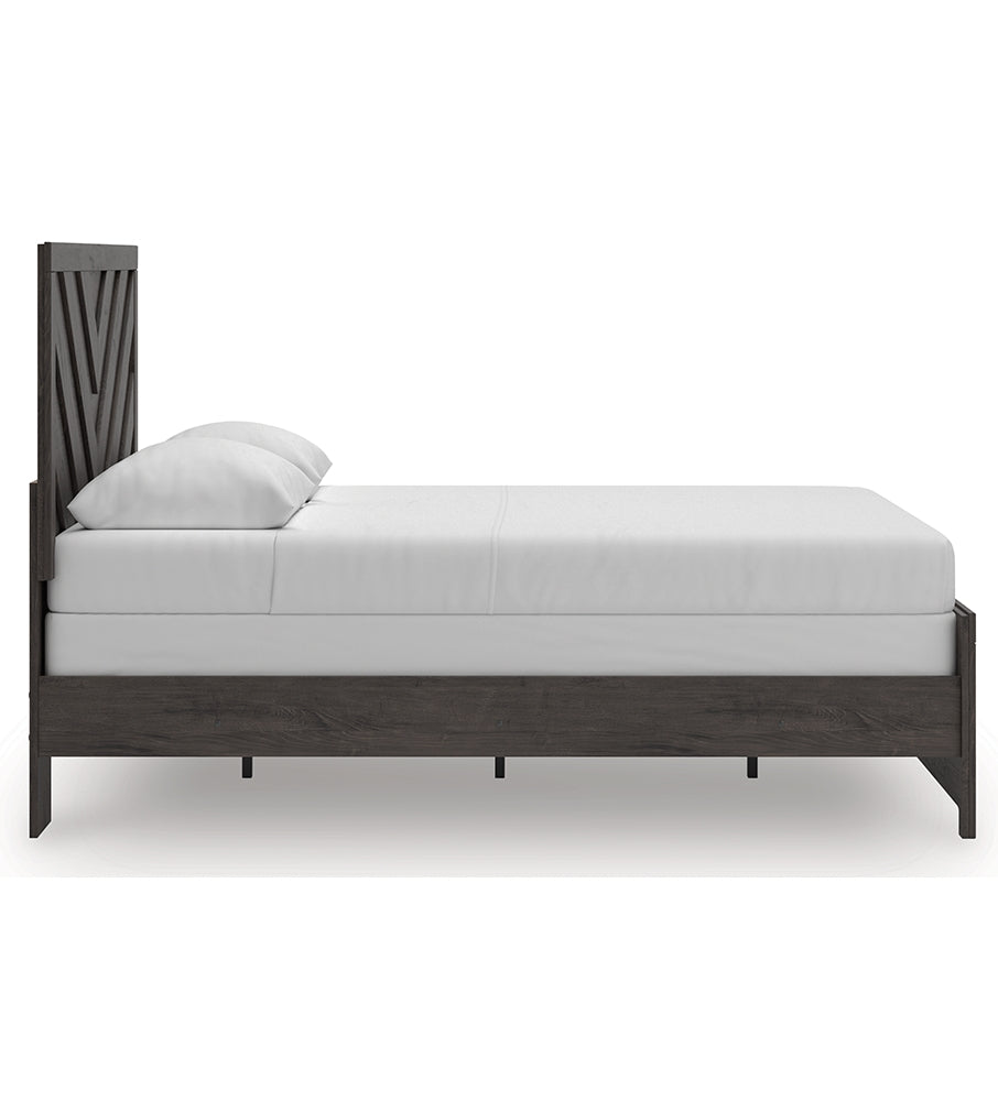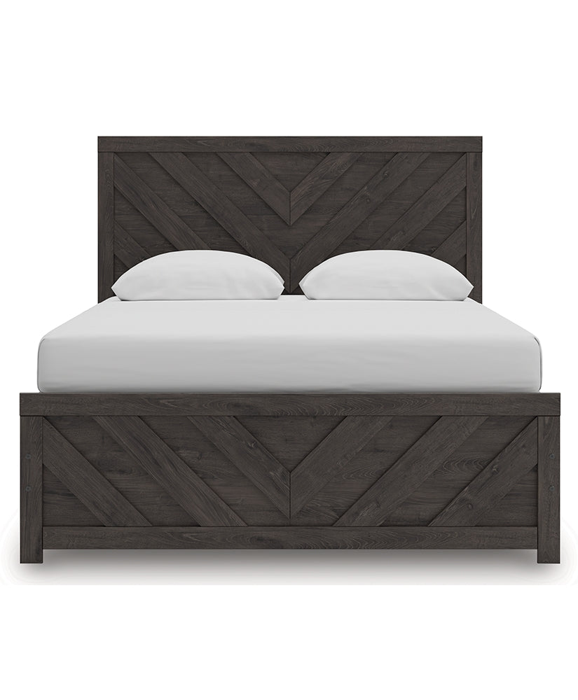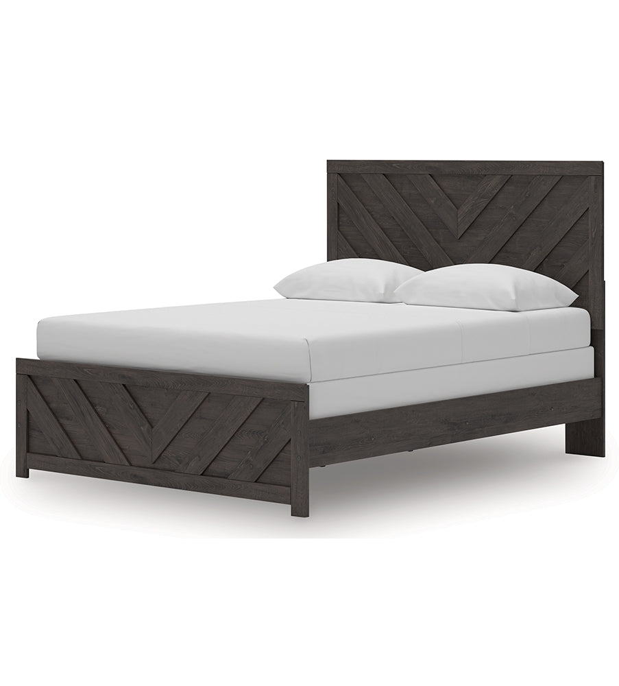 Designed with everyday style in mind, this queen panel bed is a simply chic approach to modern living. A dark charcoal finish blends black and brown undertones, creating a versatile look that effortlessly pairs with your existing pieces. And for an extra dash of trend-right style, the headboard is dressed in a playful chevron pattern.