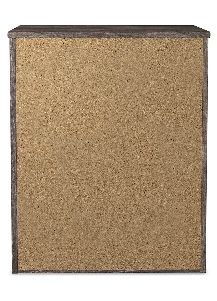 With its clean-lined look and modern attitude, this bedroom package is a fresh style awakening. A warm gray hue over replicated oak grain easily complements other furniture finishes. The set's antiqued pewter-tone drawer handles and plank-style headboard moulding are proof that beauty lies in the details.