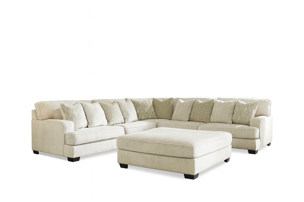 If you love the idea of contemporary style that’s ultra warm and inviting, this 3-piece sectional with oversized ottoman is casual refinement you’ll love living with. Lightening things up in a fresh neutral tone, this sectional and ottoman set is covered in a decadently soft chenille microfiber that’s love at first touch. Sporting clean lines and wide track arms, the sectional indulges with ultra-deep 45" seats and reversible cushions that are easy to flip and fluff. Firmly cushioned square ottoman multitasks as a footrest and casually cool coffee table.