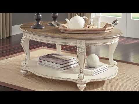 Elevating the art of traditional cottage styling, this oval coffee table is sure to serve you beautifully for years to come. Antiqued two-tone aesthetic blends a chipped white with a distressed wood finished top for added charm. Classic cabriole legs and shapely lower shelf are a lovely twist. Decorative corbels add refinement.