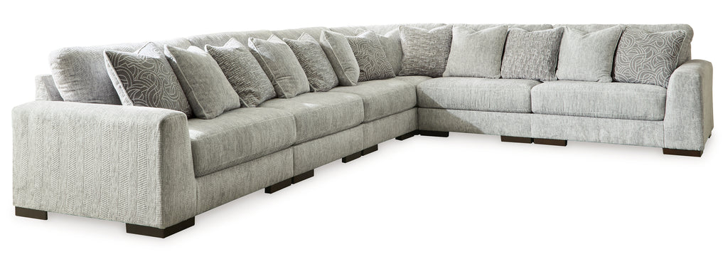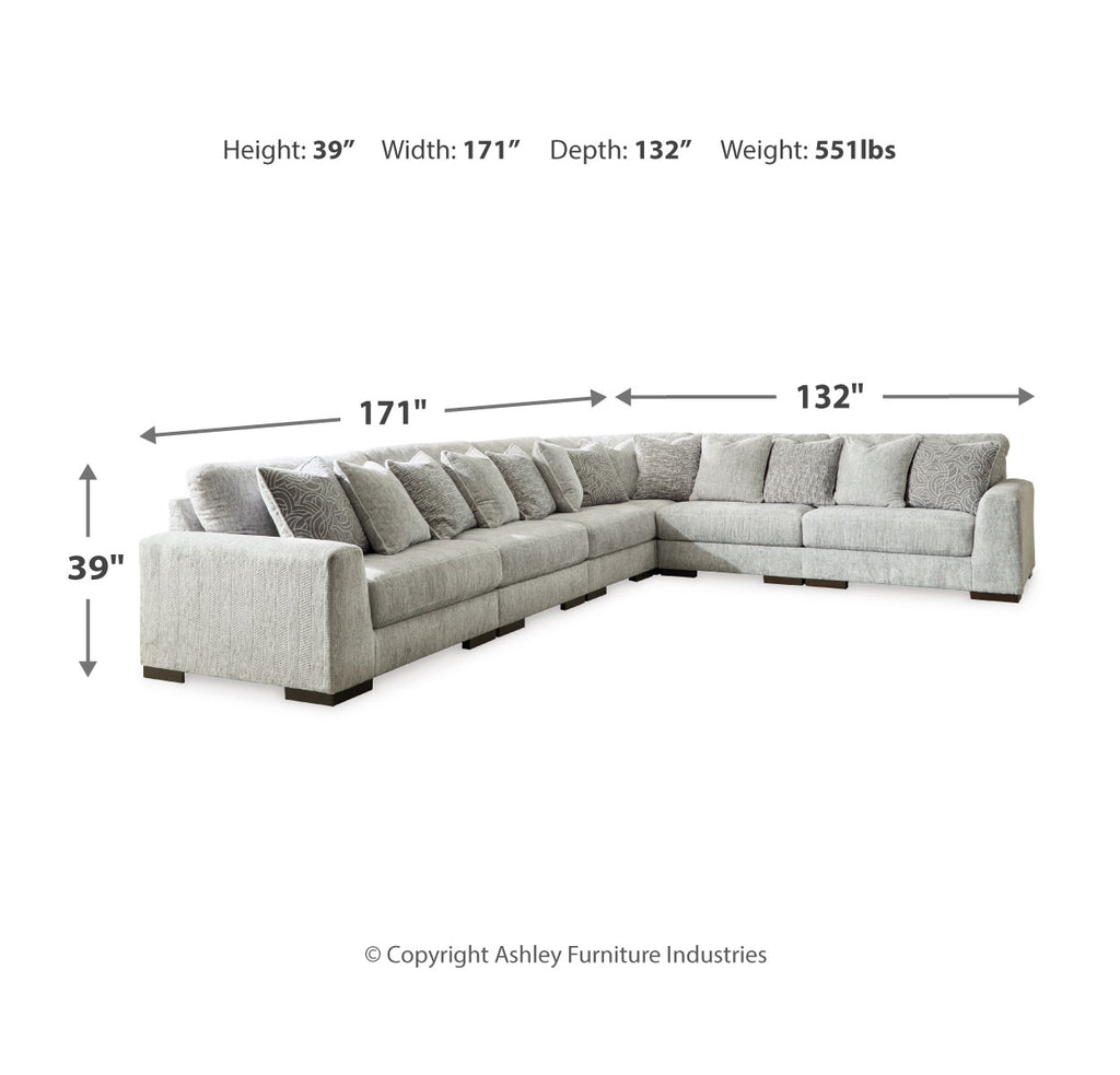 • Includes 6 pieces: left-arm facing corner chair, right-arm facing corner chair, wedge and 3 armless chairs