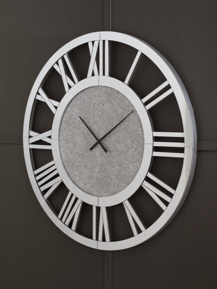 Add some serious sparkle and sophistication to your space. This glamorous wall clock combines cut glass and beaded crystal for a stunning display of light and texture. Classic Roman numerals add a touch of timeless elegance.