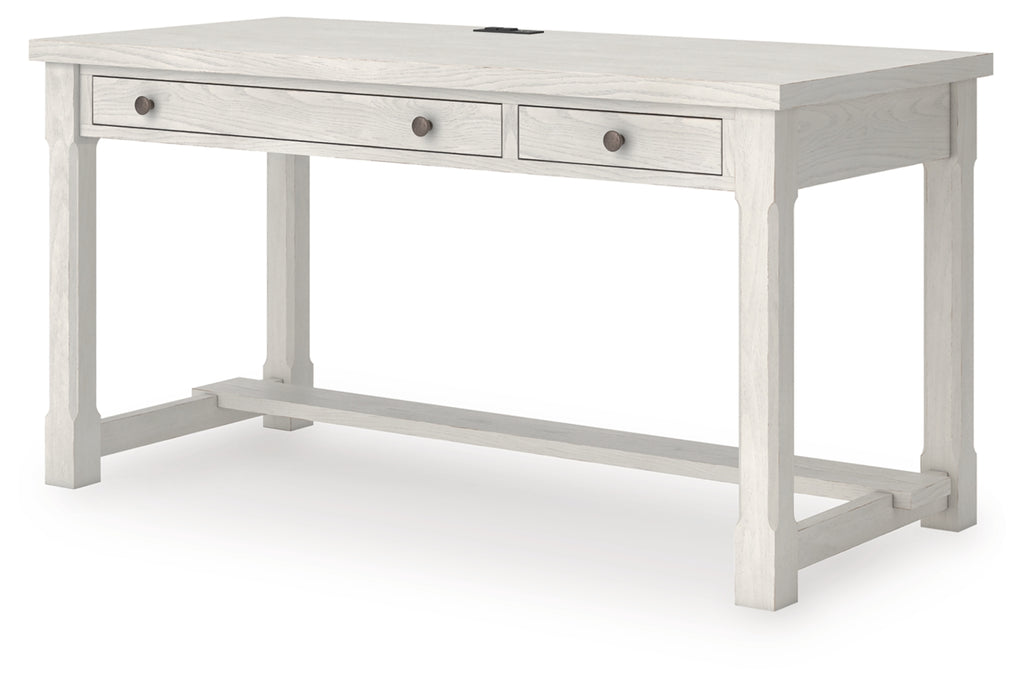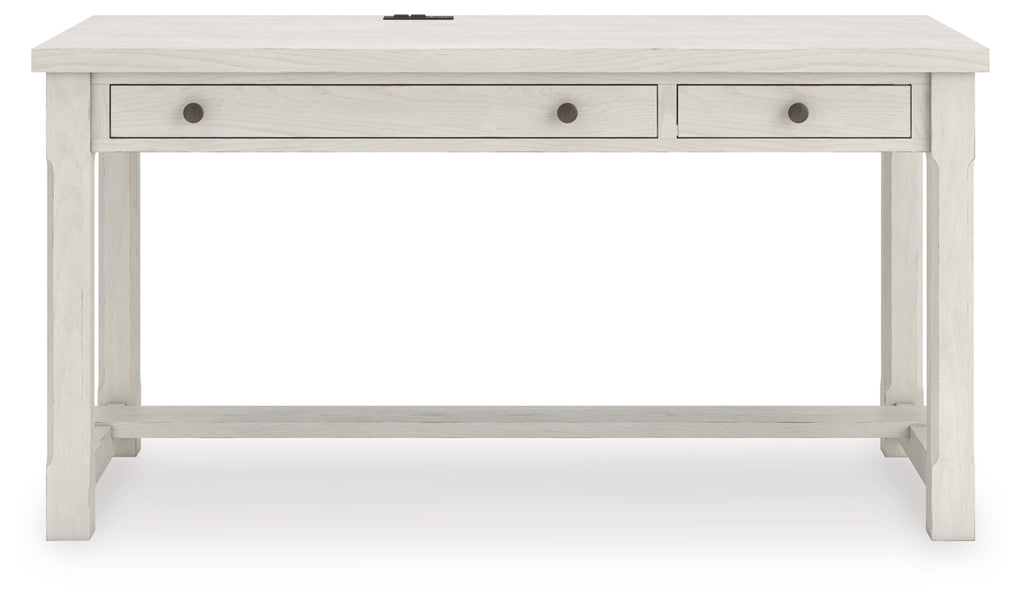 This home office desk is sure to impress when it’s time to study or work from home. With its antiqued white finish and wood grain texture, modern farmhouse-style workstations have never been so fashionable. A wide keyboard drawer and convenient USB charging bring function galore to your at-home office. Use this piece as a stand-alone work area, or pair it with the matching desk return (sold separately) to expand your workspace. All that’s missing is you.