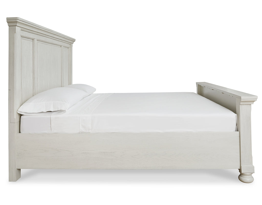 • Includes king panel bed (headboard, footboard and rails), 7-drawer dresser with mirror and 5-drawer chest