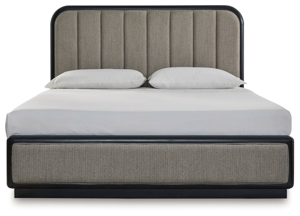 Inspired by art deco design, this softly shaped bedroom package makes a lasting impression in a simply stunning way. Magnificent curved silhouettes are enhanced by a rich layered black finish on the textured wood grain surface. These are the statement pieces you’ve been dreaming of to elevate your contemporary inner sanctum.