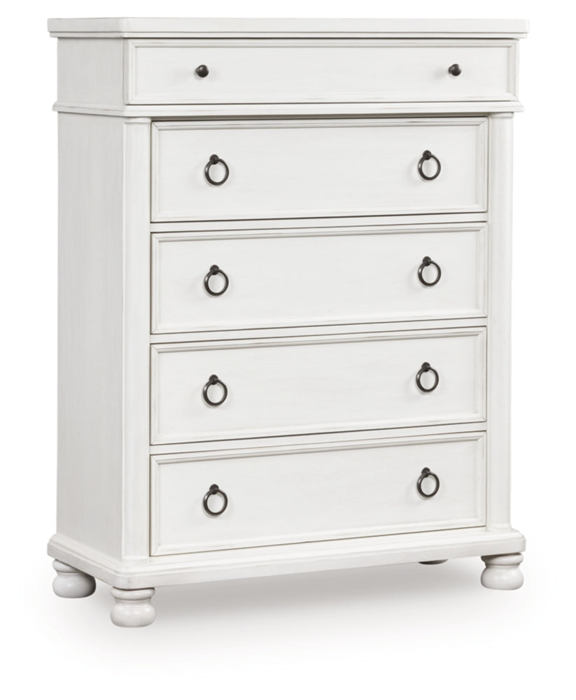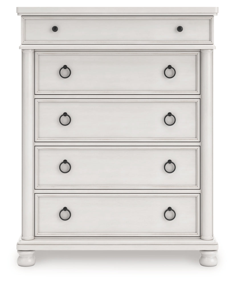 - 5 smooth-gliding drawers with fully finished interiors, French/English dovetail construction and heavy-duty ball-bearing side glides