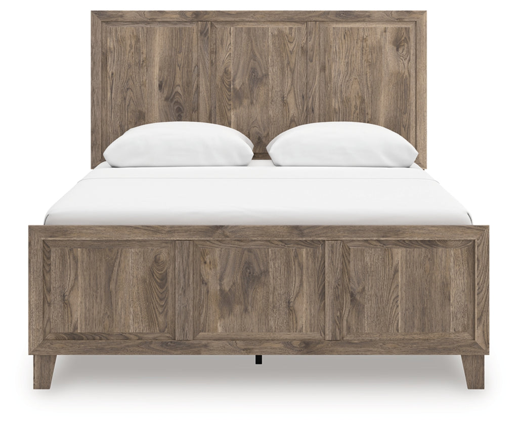 Classically chic. This queen panel bed marries traditional design with modern accents. Its deep brown finish recalls the authentic touch of hickory grain for a rich look and feel. Paneled details on the headboard add delightful dimension. Sincere in its styling, this piece sets the scene for a warm, welcoming vibe in your bedroom.