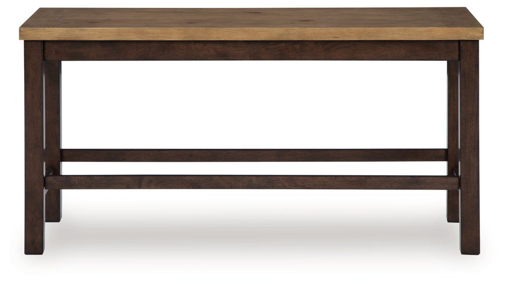 Add a dash of enduring design to your home with this counter height dining bench. Its two-tone look contrasts light and dark chestnut finishes for a touch of casual rustic charm that’s both current and timeless. It’s a simply striking choice that lends a seamless blend of form and function wherever friends and family gather.