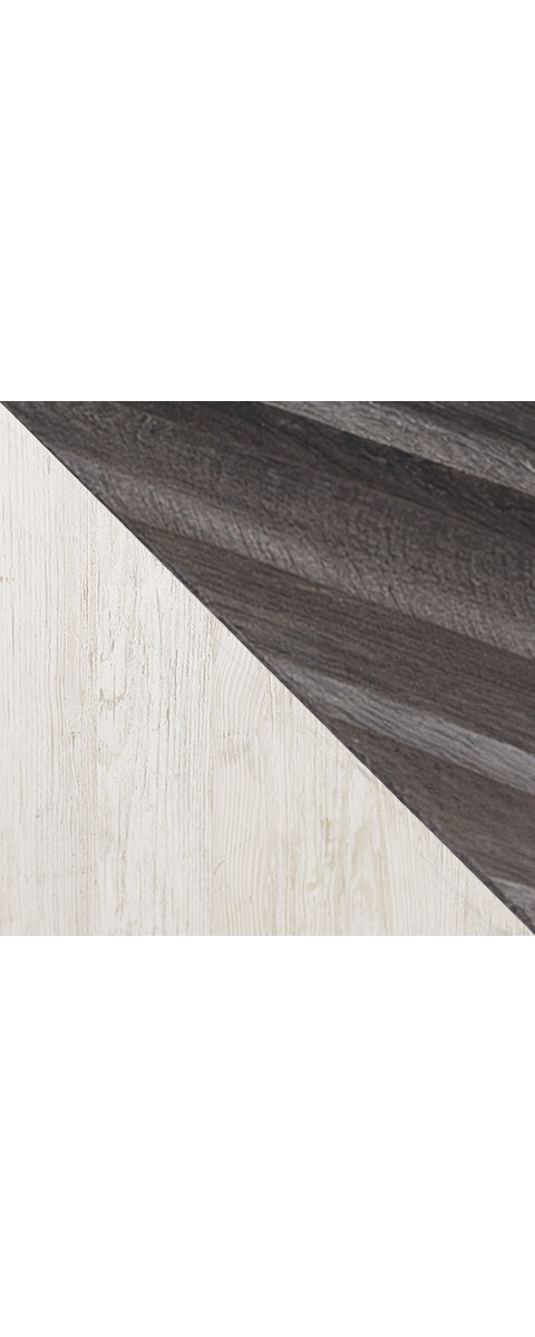 • Top with rustic gray planked replicated oak grain with authentic touch