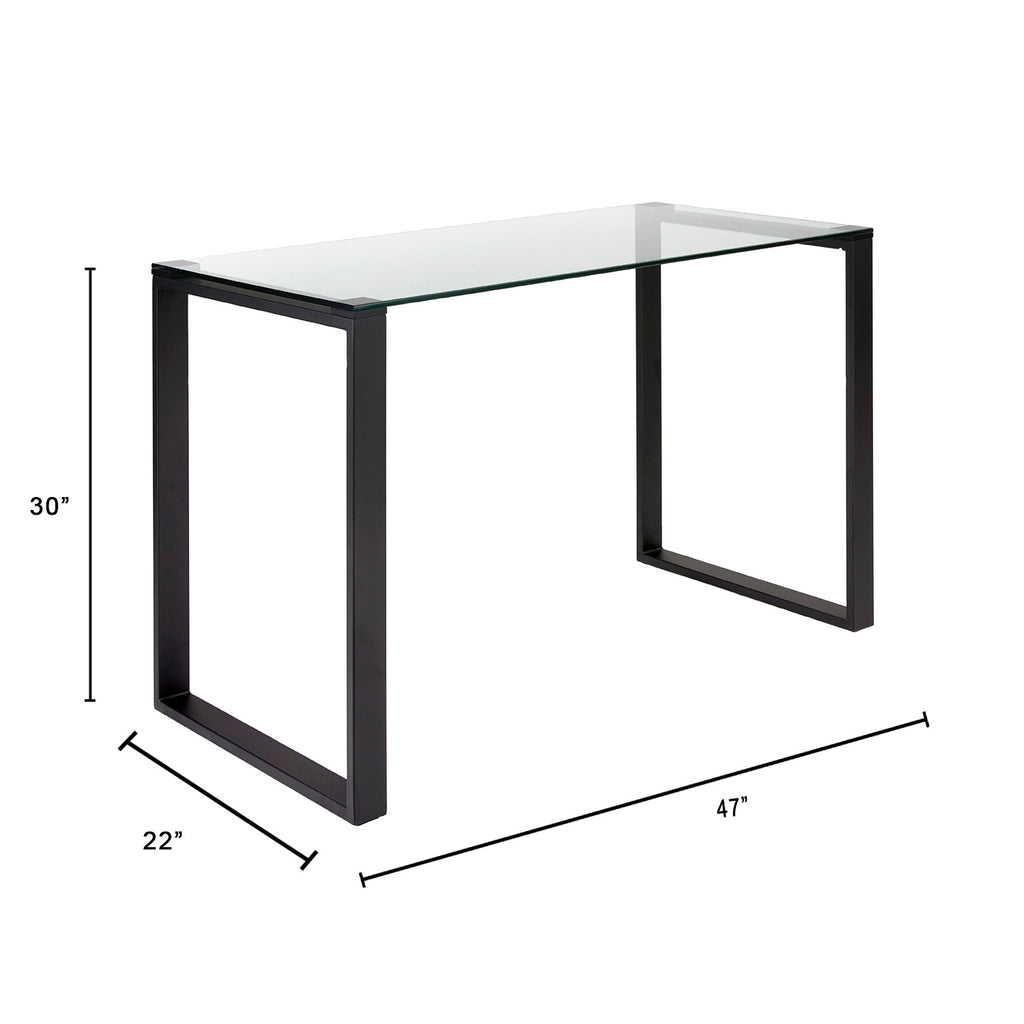 Transform your workspace with our contemporary desk that combines minimalist aesthetics with robust construction. The sleek black metal frame offers sturdy support, while the tempered glass top provides a clear, modern surface for your work activities. Ideal for a home office or a certified commercial space, this desk offers ample room to spread out your documents and electronic devices. Its streamlined design fits effortlessly into small spaces, adding a touch of sophistication without overwhelming the area. Upgrade your work area with this stylish and practical desk that is sure to inspire productivity and creativity.