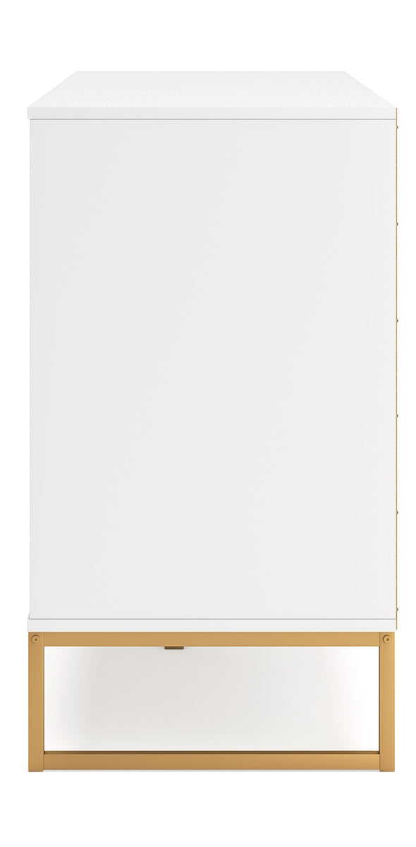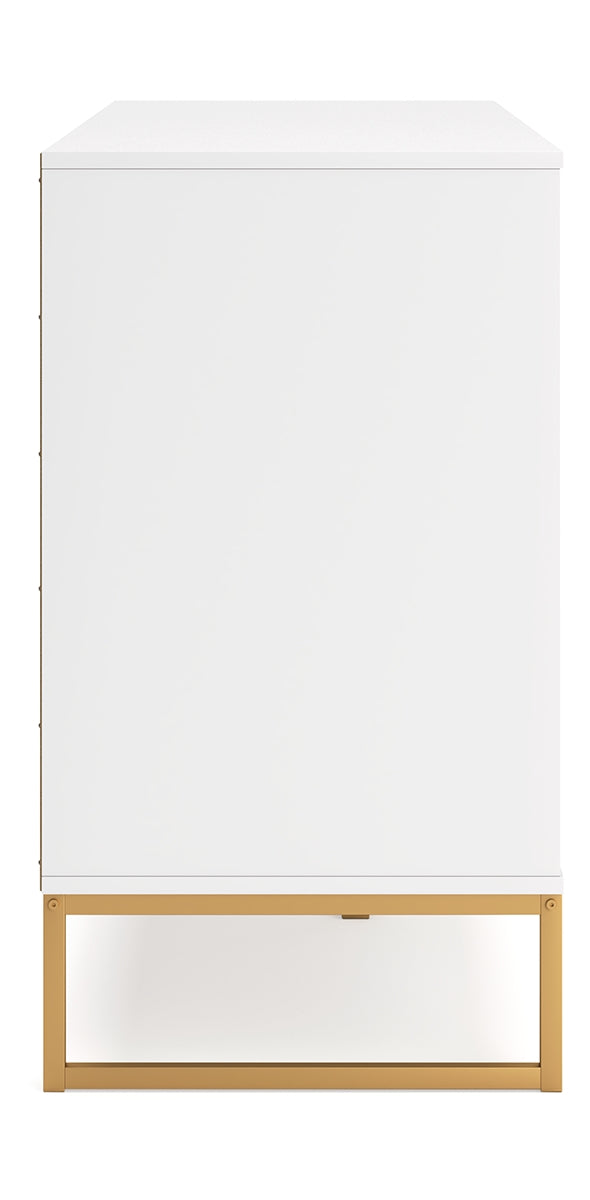 Light and bright, this dresser is inspired by chic design. A matte white finish and goldtone accents offer an elegant touch to this so-cool piece. It beautifully blends the hues of natural living with the edginess of your modern lifestyle.