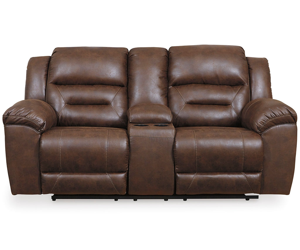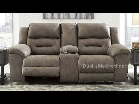 For those who love the cool look of leather but long for the warm feel of fabric, this power reclining loveseat delivers both with ease. Its high-performance padded faux leather is remarkably durable and easy to clean, making it just the thing for family spaces. When it’s time to relax, the one-touch power control puts the perfect position at your fingertips. Channel-stitched back cushions provide indulgent lumbar support for maximum seating comfort—not to mention fashion-forward flair.