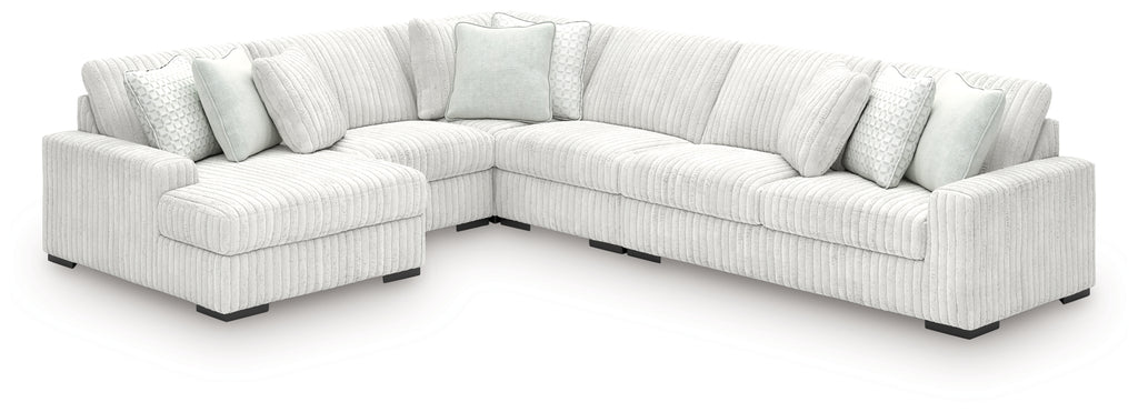 Features- Includes 5 pieces: left-arm facing corner chaise, 2 armless chairs, wedge and right-arm facing sofa