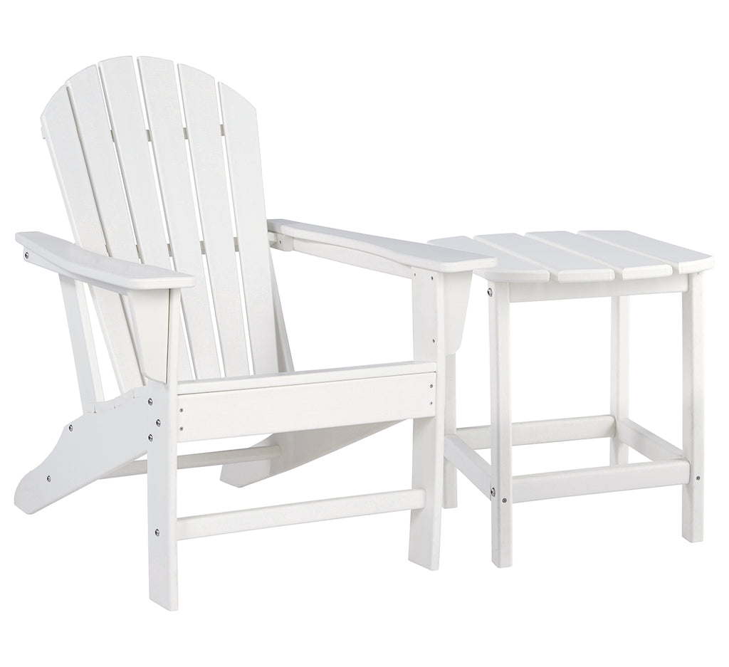 Add cottage-quaint charm to your outdoor oasis with this 2-piece outdoor set in white. Made of a hearty hard plastic material with a touch of texture, it’s sure to weather the seasons beautifully. Designed to shed rainwater, the chair and table’s slatted styling provides exceptional form and function.