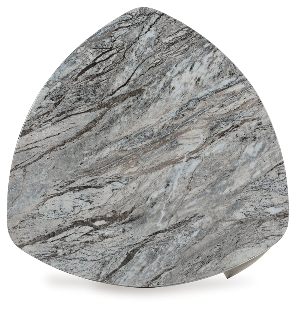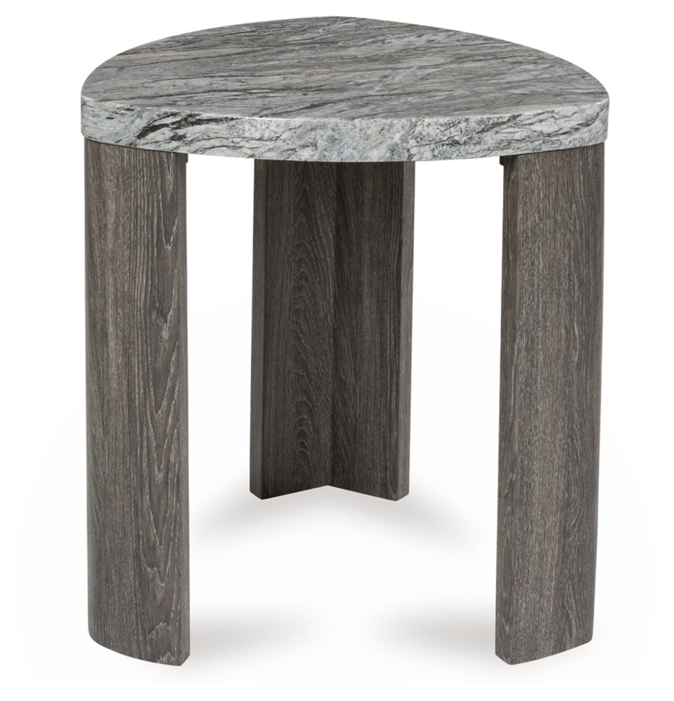 Striking contemporary form, meet can’t-miss function. This end table pairs the look of faux gray marble with a weathered gray wood grain for a simply chic approach to monochromatic style. Perfect as a perch for remotes, a lamp or morning coffee, it’s a luxe take on everyday living.