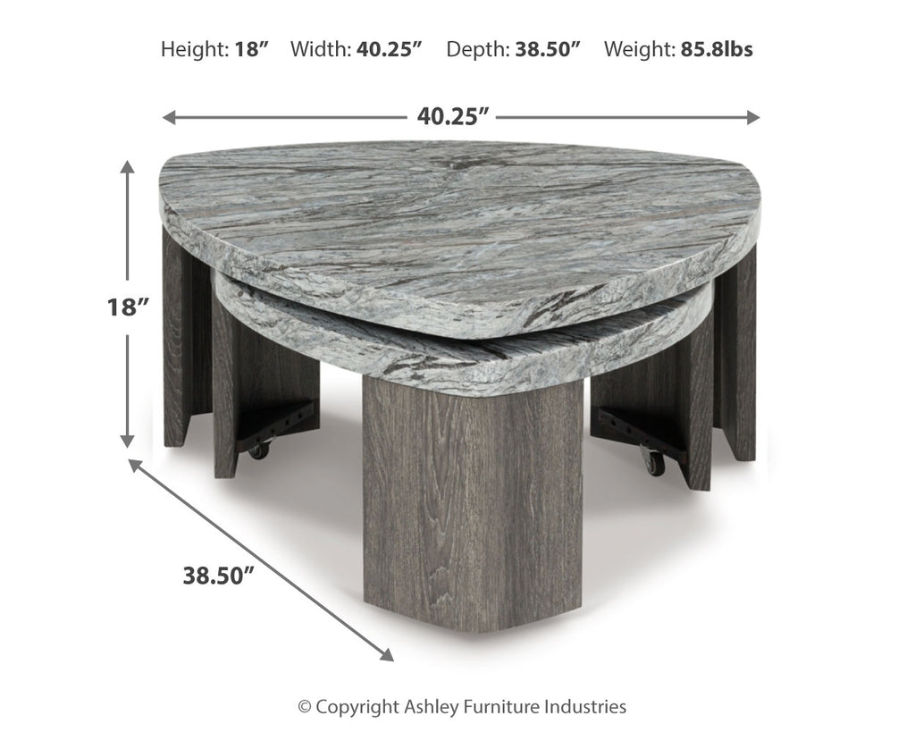 Striking contemporary form, meet can’t-miss function. This stacked coffee table pairs the look of faux gray marble with a weathered gray wood grain for a simply chic approach to monochromatic style. Make the most of your space with its cantilevered design—simply roll out the pivoting lower table when you need the extra room, and effortlessly tuck it away when you don’t. What a luxe take on everyday living.