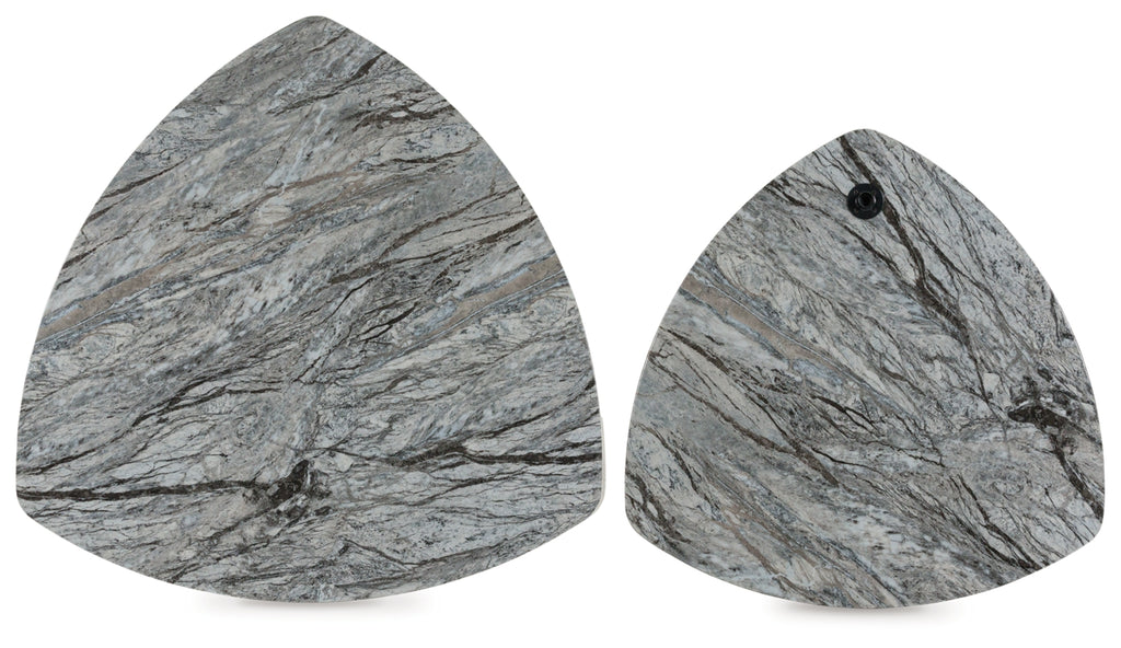 - Tabletops with gray faux marble