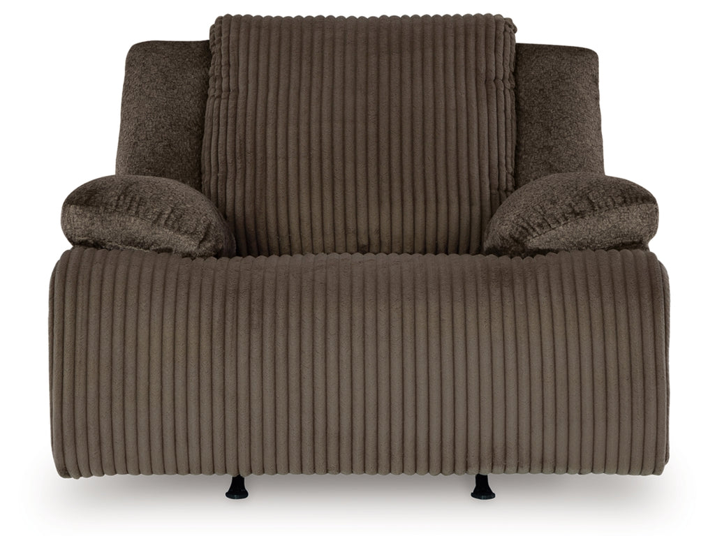 Experience unparalleled comfort with this rocker recliner. It’s a stylish and invitingly soft look—made all the more appealing by cozy corduroy cushions that feel great and add a touch of texture. The rich chocolate brown upholstery effortlessly blends into your decor, making it a gorgeous addition to your home. So sit back and unwind in this spacious recliner, perfect for gatherings with friends and family.