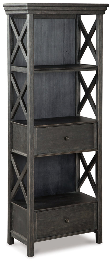 Invite your family into the heart of your home with the Tyler Creek dining room display cabinet. Its black finish is beautifully textured, and an X-shaped design down the sides makes it all around eye-catching. Put your dinnerware and decor on display on the top shelf, and store away essentials inside the roomy drawers. This is trend-right urban farmhouse style.