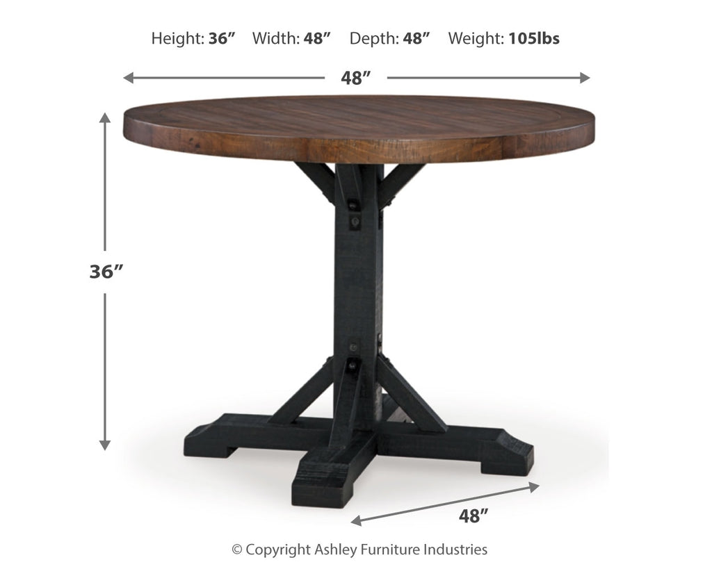 A high-style choice for dining spaces, this counter height dining table serves up the best in rustic farmhouse living. Its two-tone finish pairs a brown tabletop with a distressed vintage white base for a double helping of charm. The table features four storage drawers (two on each side), a seven-bottle wine rack and two open shelves for display. The sturdy post and bracket base design, with black metal accents and a thick dining top, lends an earthy appeal.