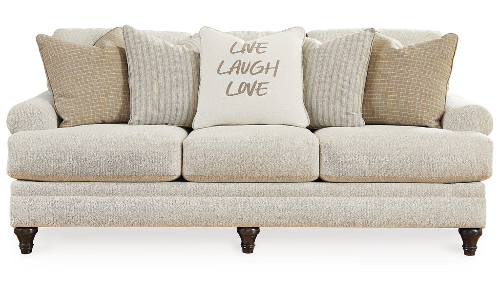 Seeking simple, transitional style? Enter this sofa. Its commitment to carefree comfort is right at home with your relaxed living room aesthetic. A subtle chevron effect elevates the everyday charm of the neutral fabric, while the deep, plush seats bring a cozy vibe to this chic piece.