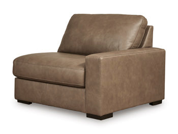 - 100% top grain leather covers inside areas such as the back, seat and arm cushions; skillfully matched faux leather covers the remaining areas