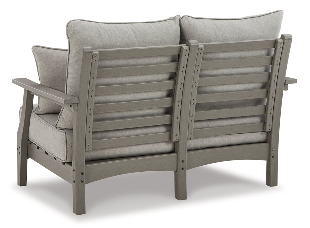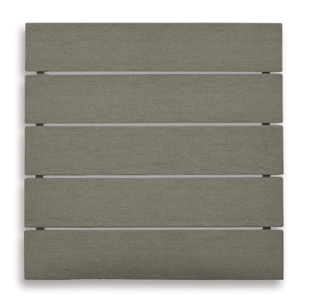 It’s the dawn of a new day for gray. Embrace the style trend with this outdoor set. Each piece is crafted of HDPE material, combining the exceptional durability and weather resistance you need with the “wood look” you love. The tables and comfortably cushioned seats take alfresco living to a whole new level. Slatted table tops infuse a plank-style, farmhouse-inspired touch and naturally shed rainwater. Rest assured, the thick cushions on the sofa, loveseat and lounge chairs are wrapped in Nuvella® high-performance fabric that’s fade-resistant, stain-resistant and a breeze to keep clean.