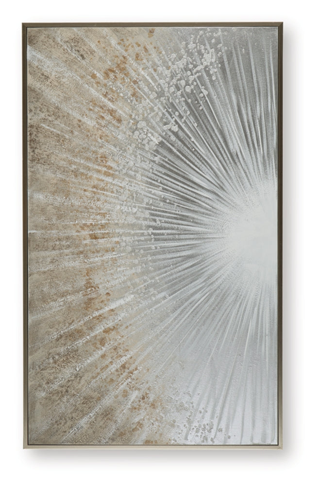 Brighten up your decor with this wall art. Its abstract design recalls the beauty of sunbeams peeking through the clouds, with gleaming metallic foil embellishments for added flair. A coordinating champagne-colored frame beautifully completes the piece.