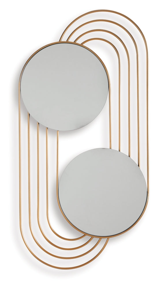 Look at you—times two. If an ultra-contemporary look is the vibe you're going for, then this accent mirror is beautifully on point. A gracefully curved goldtone frame completes the design with a sense of subtle sophistication. What an eye-catching addition to modern or eclectic decors.