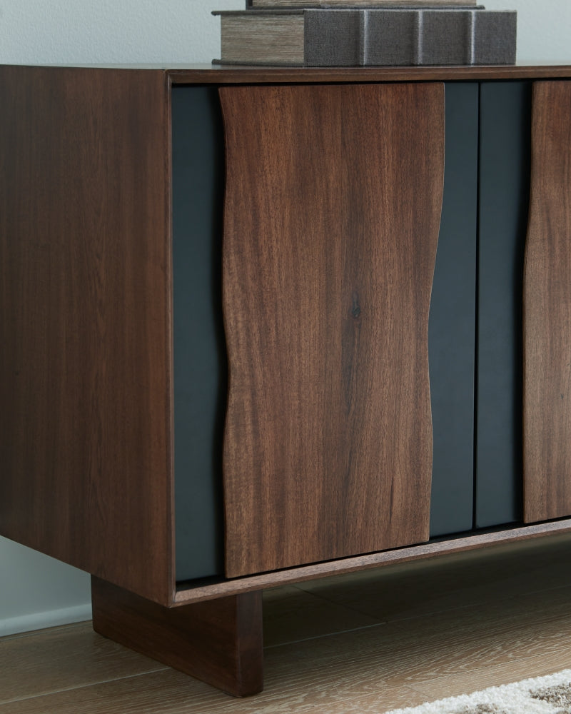 This accent cabinet recalls the rugged textures of nature and brings them indoors. Live edge door fronts pop against the neutral finish for a refined-meets-salvaged feel. Whether it's used as a chic storage piece or an eclectic TV stand, this cabinet radiates authentic, beautiful character.