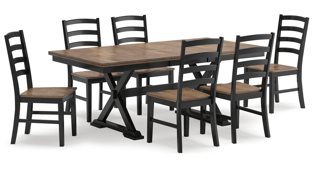 Raise the bar on modern farmhouse style with this dining package. Its casual good looks are accentuated with a handsome two-tone finish. The chair’s clean lines and the table’s sturdy silhouette add a fresh element, whether your style is vintage, country or eclectic. This richly crafted set serves up charm wherever folks decide to take a seat.