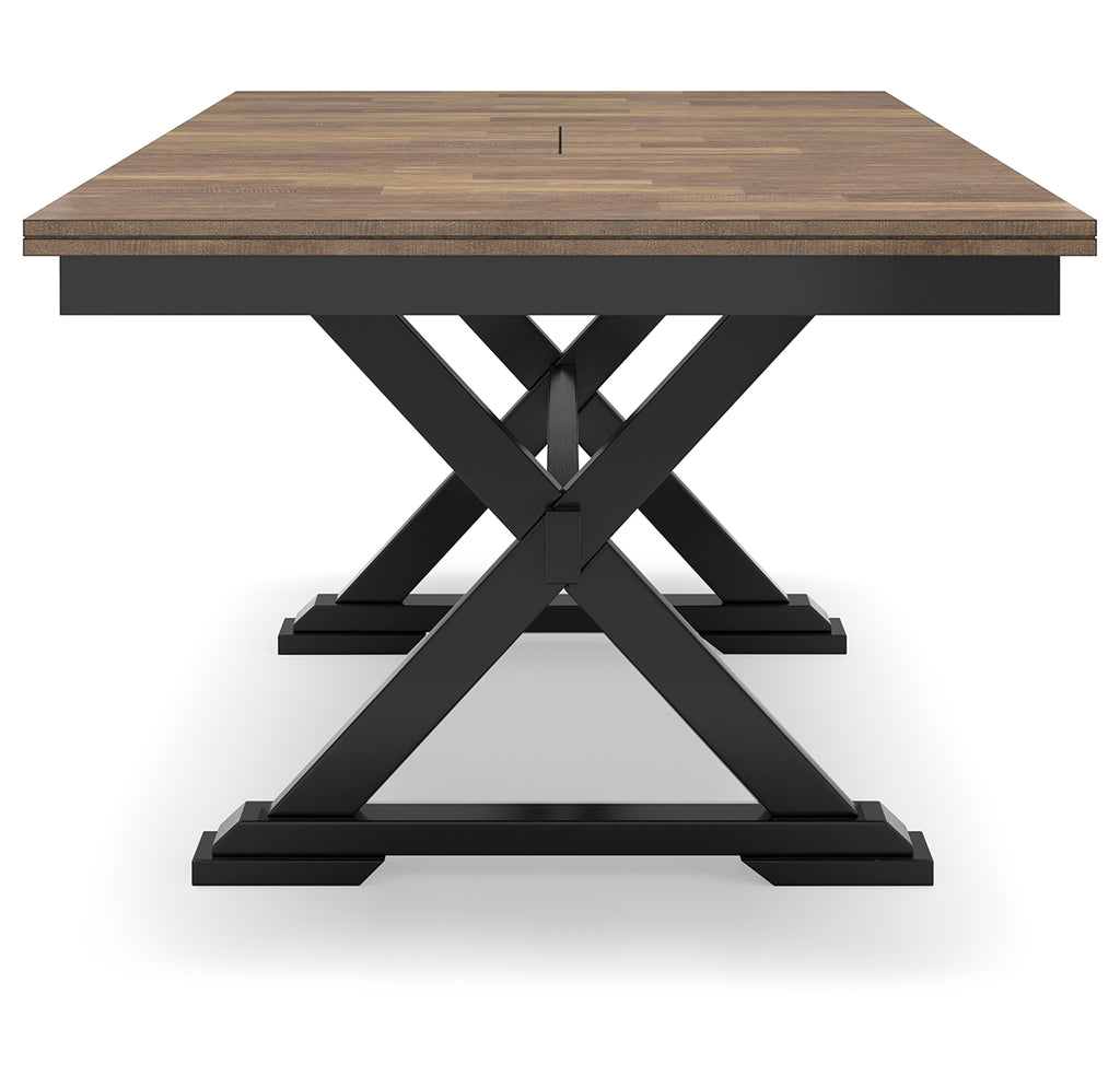 • 2-tone finish (butcher block mango veneer top with deep brown wood tone finish; frame with warm satin black finish)