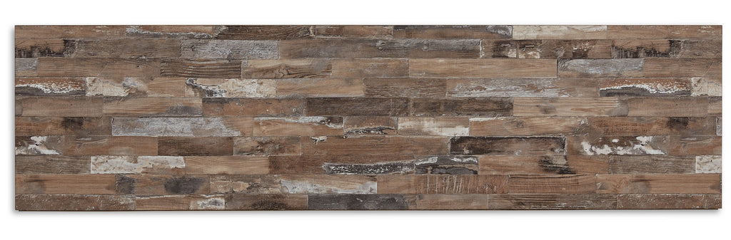 • Replicated white wash worn through paint; TV stand top with replicated wood grained block pattern with an authentic touch