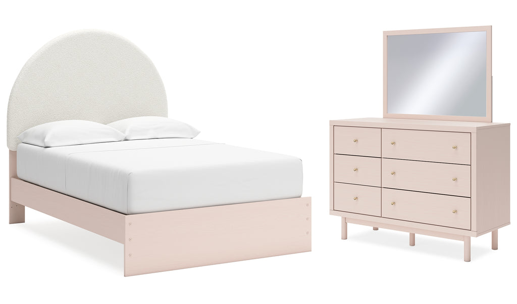 Wistenpine Full Upholstered Panel Bed with Mirrored Dresser