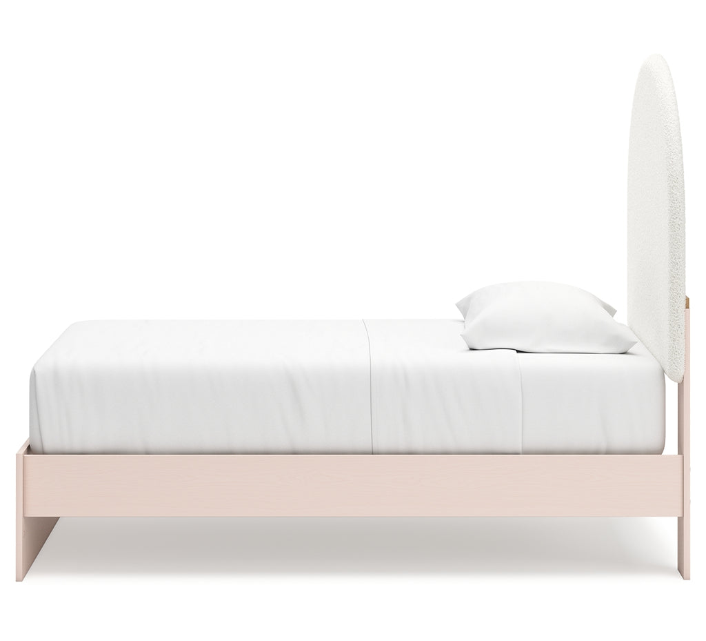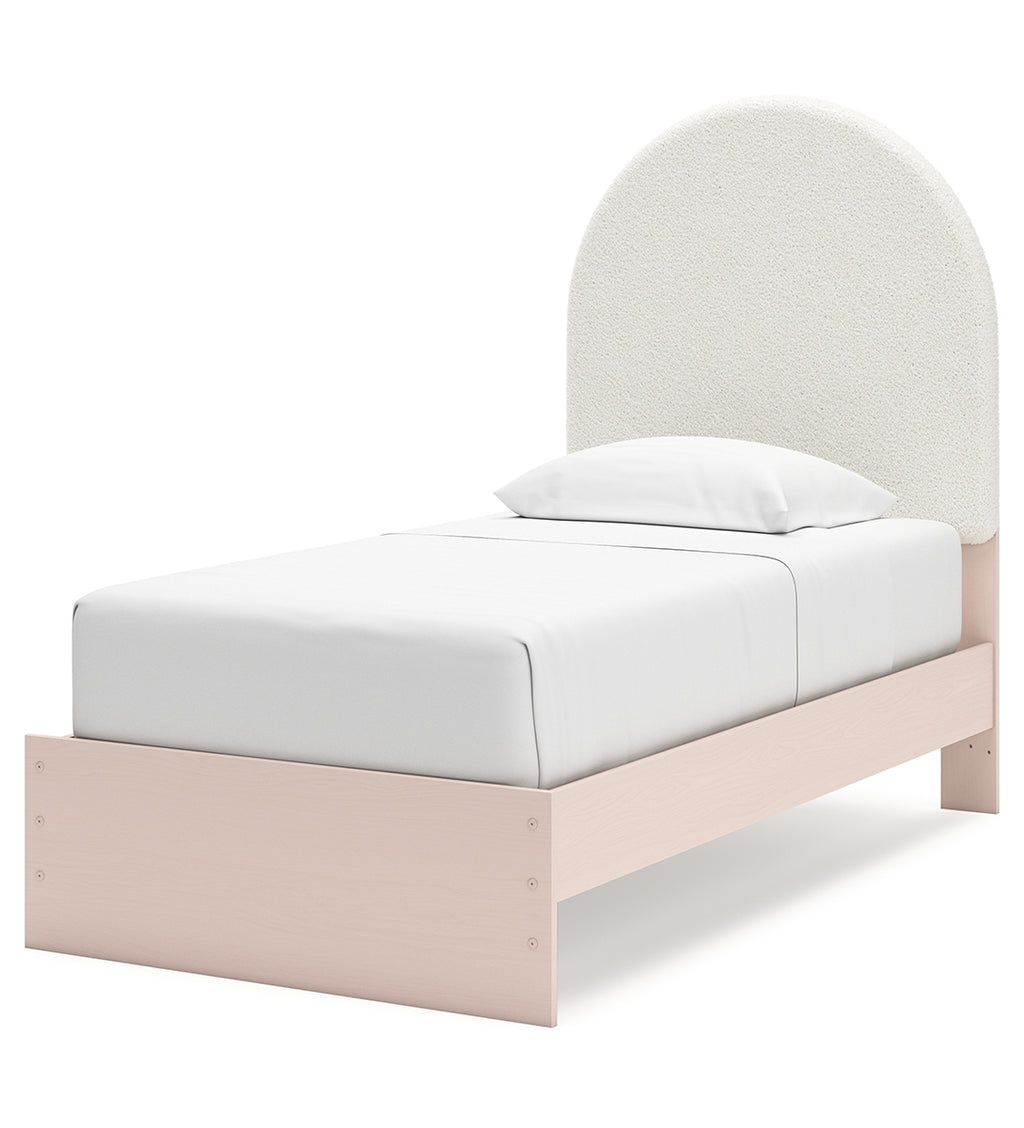 Pretty in pink. This twin upholstered panel bed keeps the spirit of your home’s modern aesthetic while suiting all your young one’s needs. Its cozy-cute upholstery and subtle blush finish bring a playful, charming vibe to bedtime. Made for her and styled for you, it’s a lovely addition to a beautifully chic child’s bedroom.