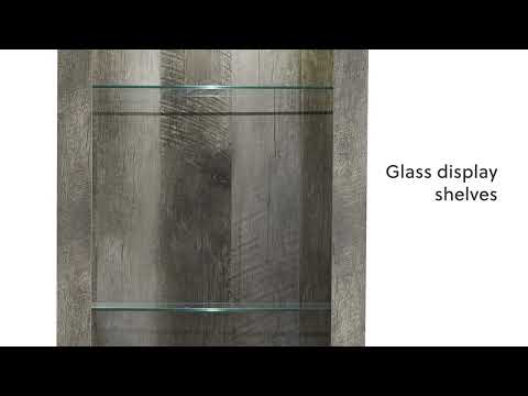 - Each pier with 2 glass shelves and cabinet door revealing single-shelf storage; overhead LED lighting; reversible cabinet doors and can open left or right with consumer assembly modification