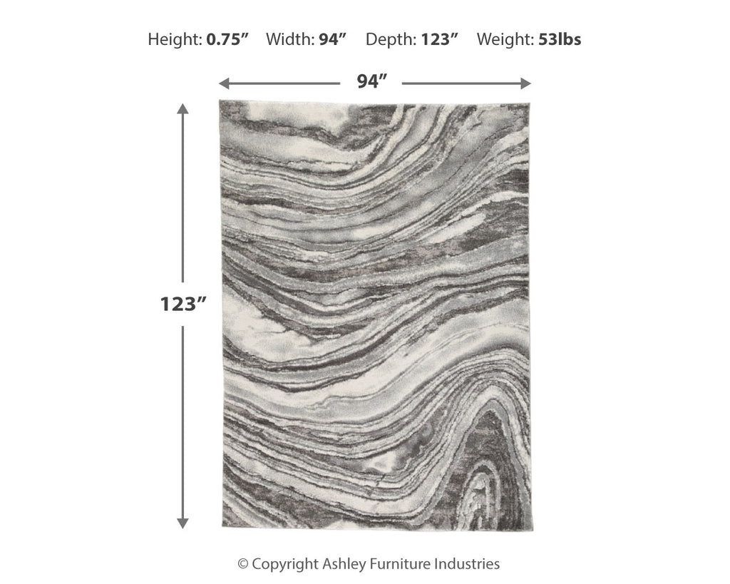 Inspired by gorgeous quartz bands of agate, this area rug displays flowing ribbons of color. Its machine-woven high-low agate design, in ivory and shades of gray, features deep, rich hues while maintaining exceptional durability. Comfortable and sophisticated, this accent rug is the ultimate accessory for your contemporary living space.