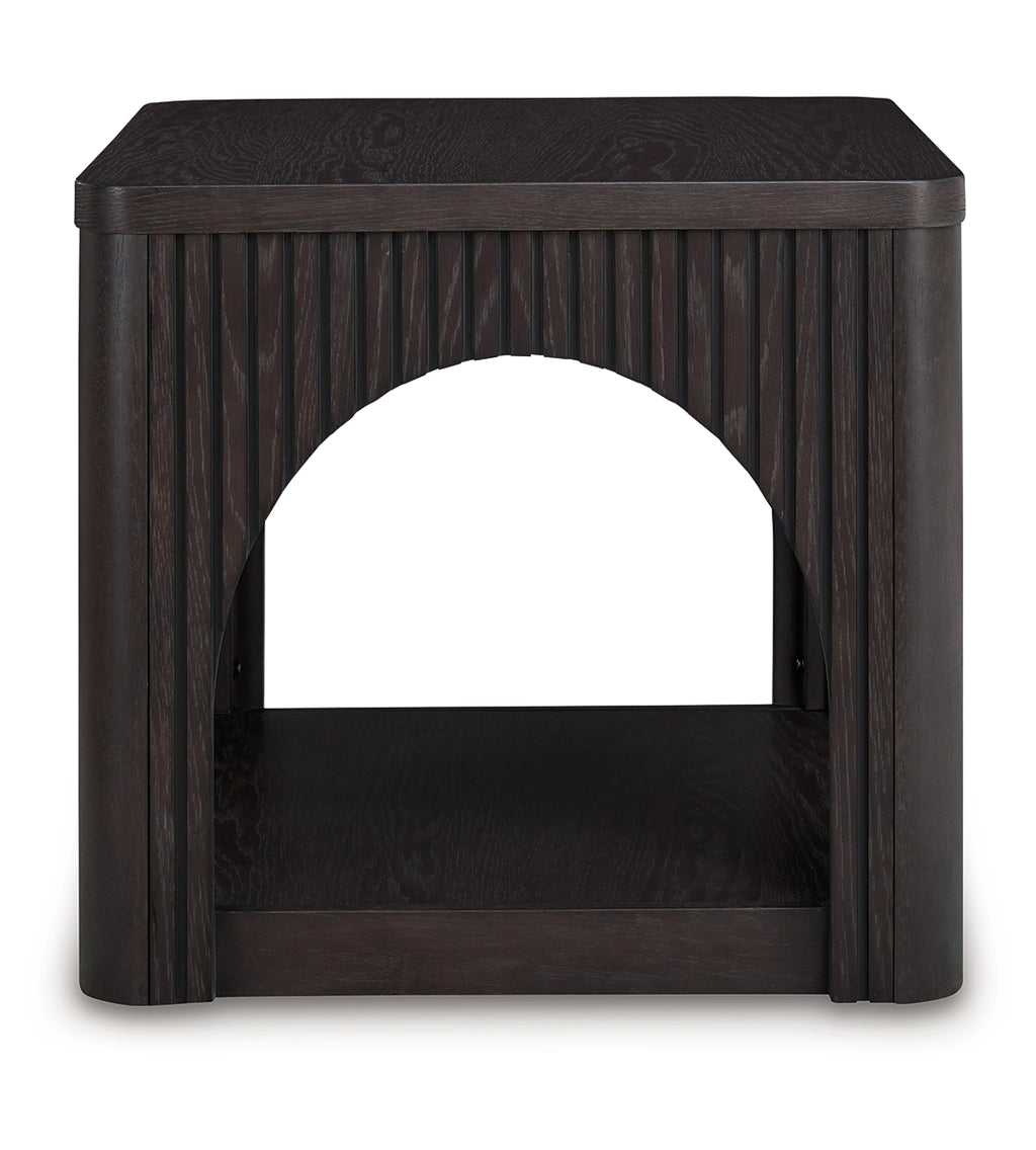 This end table exudes a sense of style and sophistication with its dark French black finish. Architecturally designed with unique arches and lattice details, it adds on-trend elegance to your existing home decor.
