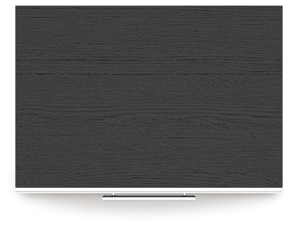 - Matte black finish with subtle replicated wood grain