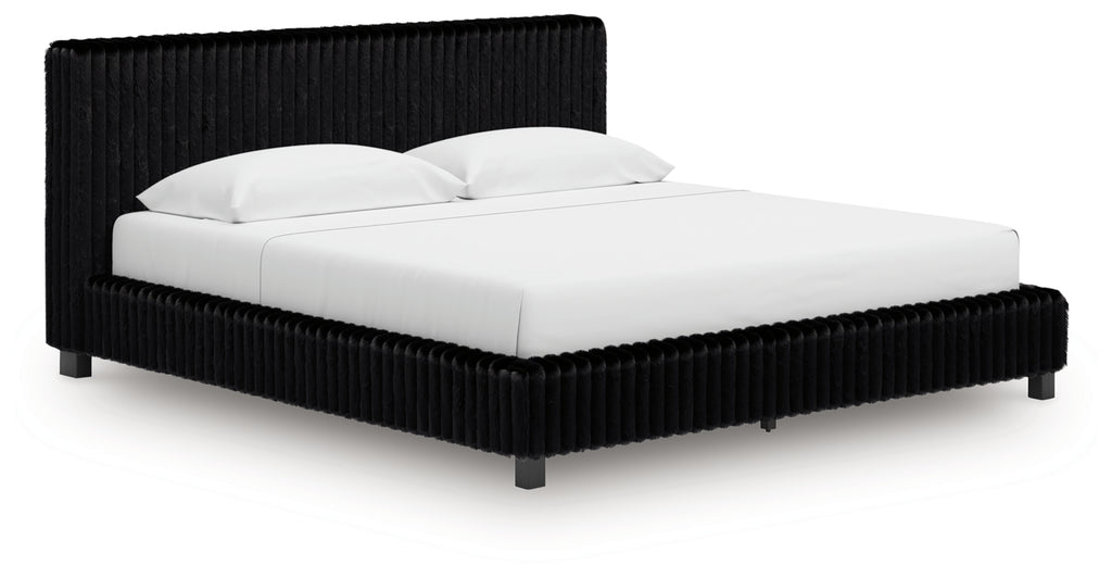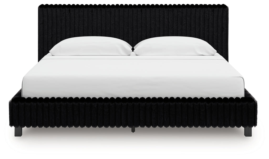 If casual and contemporary is your jam, you’re gonna love this queen upholstered bed. Covered from head to toe in a luxuriously soft black corded fabric, it has a chic flair that's sure to wake up your inner sanctum’s style. We’re talkin’ relaxed refinement.
